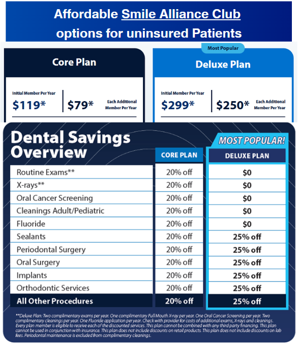 Smile Alliance Club makes it easier—and more affordable—than ever to prioritize your dental health. This dental savings program is not insurance, but it offers access to high-quality dental care at reduced rates across hundreds of participating locations. With savings of 20% to 70% on dental procedures and bonus discounts on vision, hearing, prescriptions and more—it’s easy to see why members are smiling.